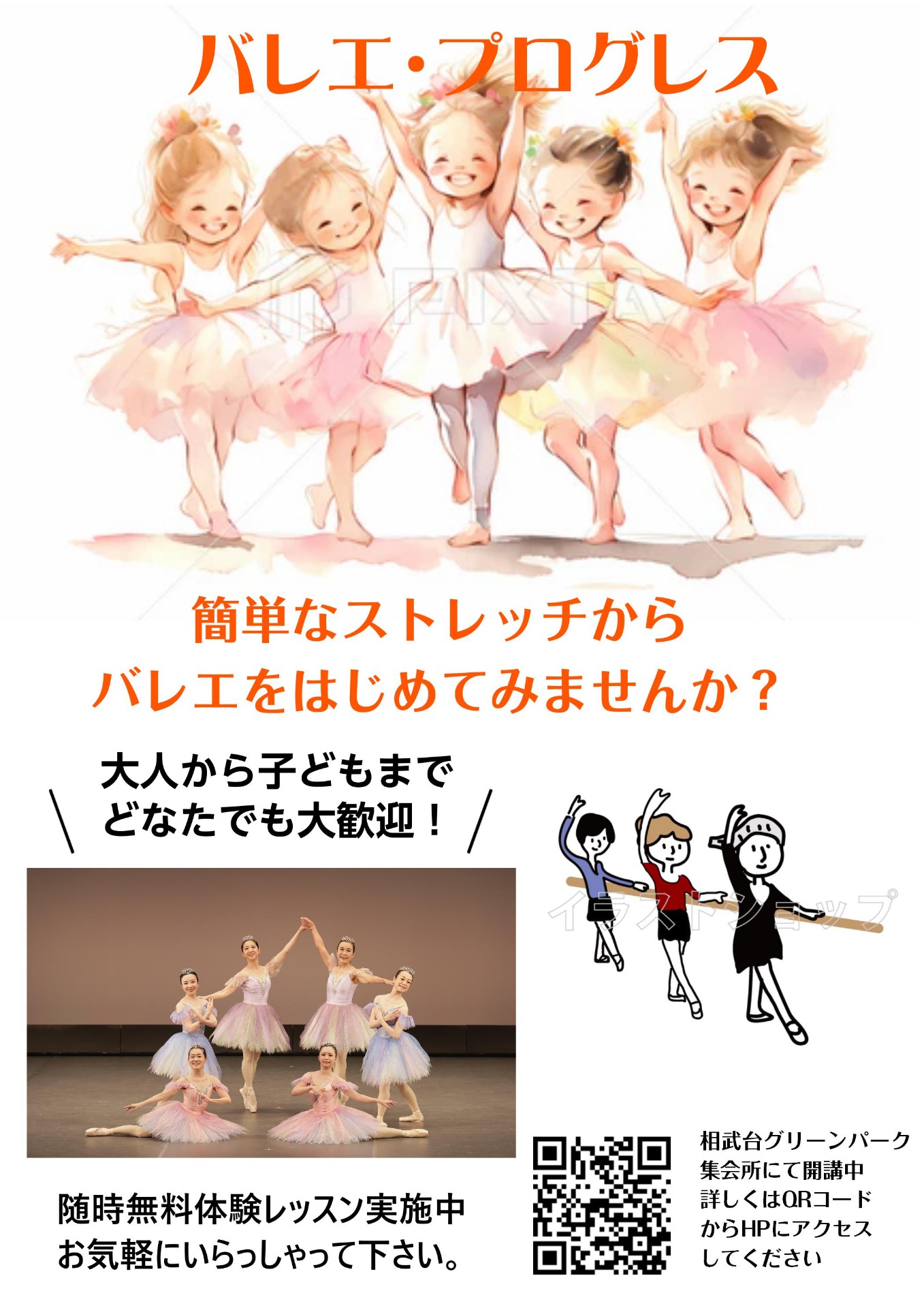バレエを全くされた事が無い方でも、どなたでもご参加いただける楽しいクラスとなってます。